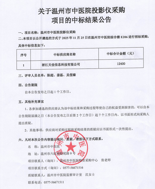 关于温州市中医院投影仪采购项目的中标(成交)结果公告