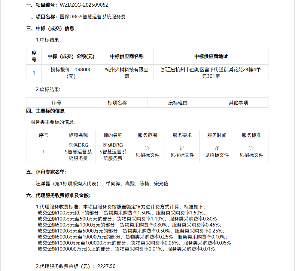 关于温州市中医院医保DRGS智慧运营系统服务费项目的中标(成交)结果公告