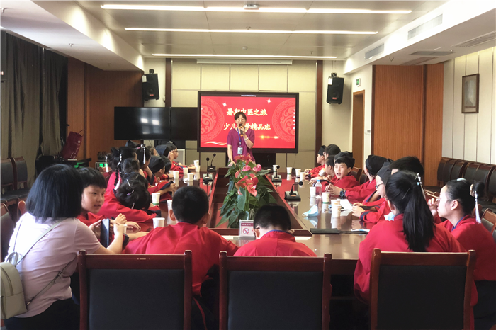 这场别开生面的中医之旅,在名医馆启程。在讲解员林立的介绍下,孩子们详细了解了温州市中医药历史和温州市中医院的发展历程,感受浓厚的中医药文化氛围。